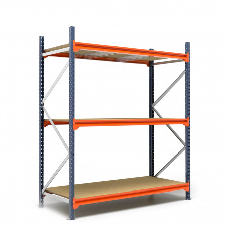 Un lineal de estanterías se compone de un módulo inicial y tantos módulos adicionales como se desee. Debe tenerse en cuenta que para formar un lineal de estanterías, los módulos deben tener la misma medida de fondo, pero tanto la altura como la anchura pueden ser diferentes. Para formar una lineal de estanterías de carga pesada en tu almacén necesitarás: